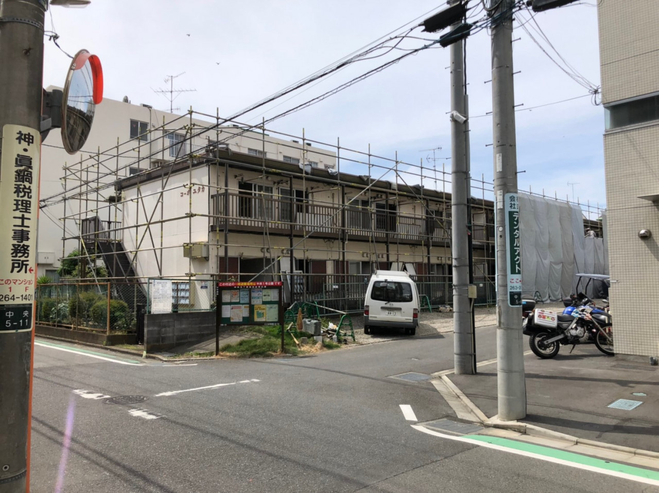 大和市の解体工事現場で解体養生足場仮設工事を行いました。 2019/06/04 大和市の解体工事現場で解体養生足場仮設工事を行いました。 こちらがダキ足場・防炎シート養生後の写真になります。 2019年6月 大和市で解体工事を行う現場の足場工事を行いました。 右が解体養生をした後の写真です。