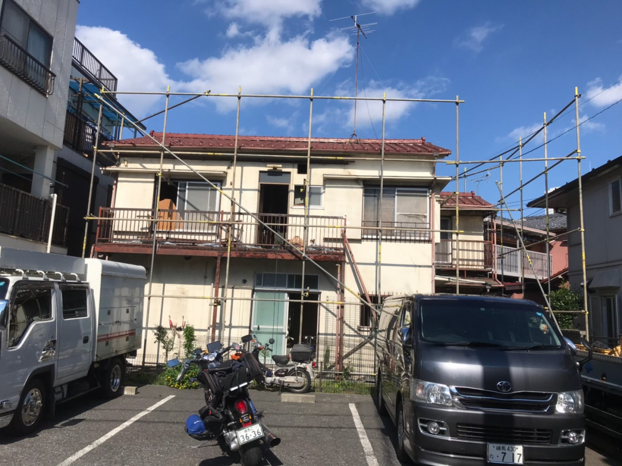 中野区の解体工事現場で解体養生足場仮設工事を行いました。 2019/06/22 中野区の解体工事現場で解体養生足場仮設工事を行いました。 こちらが単管・防炎シート養生後の写真になります。 2019年6月 中野区で解体工事を行う現場の足場工事を行いました。 右が解体養生をした後の写真です。