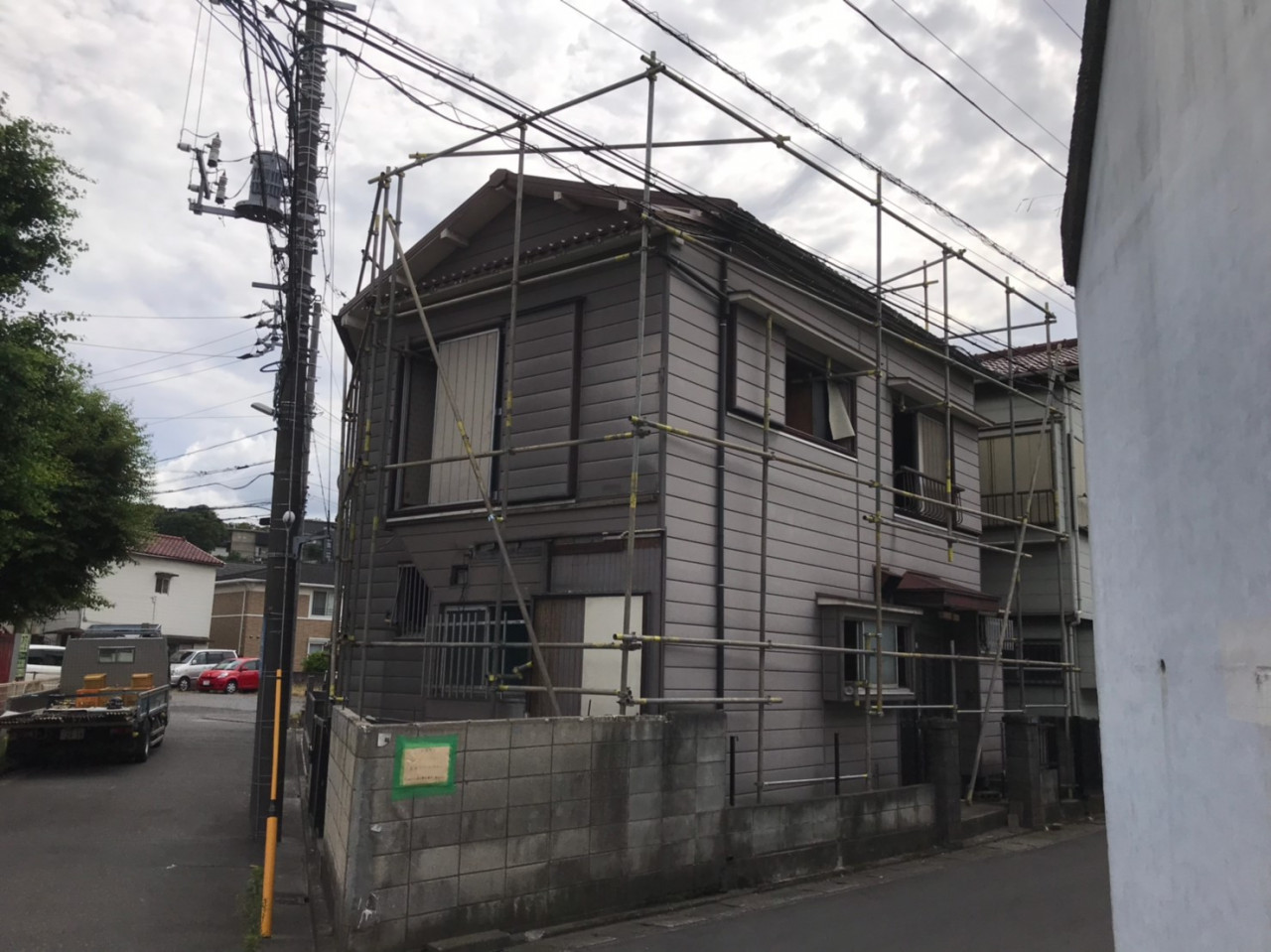 川崎市の解体工事現場で解体養生足場仮設工事を行いました。 2019/06/22 川崎市の解体工事現場で解体養生足場仮設工事を行いました。 こちらが単管・防炎シート養生後の写真になります。 2019年6月 川崎市で解体工事を行う現場の足場工事を行いました。 右が解体養生をした後の写真です。