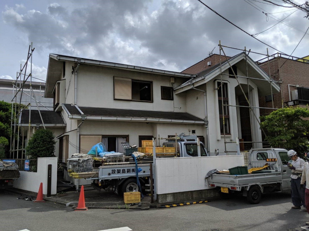 横浜市の解体工事現場で解体養生足場仮設工事を行いました。 2019/06/22 横浜市の解体工事現場で解体養生足場仮設工事を行いました。 こちらが単管・防炎シート養生後の写真になります。 2019年6月 横浜市で解体工事を行う現場の足場工事を行いました。 右が解体養生をした後の写真です。