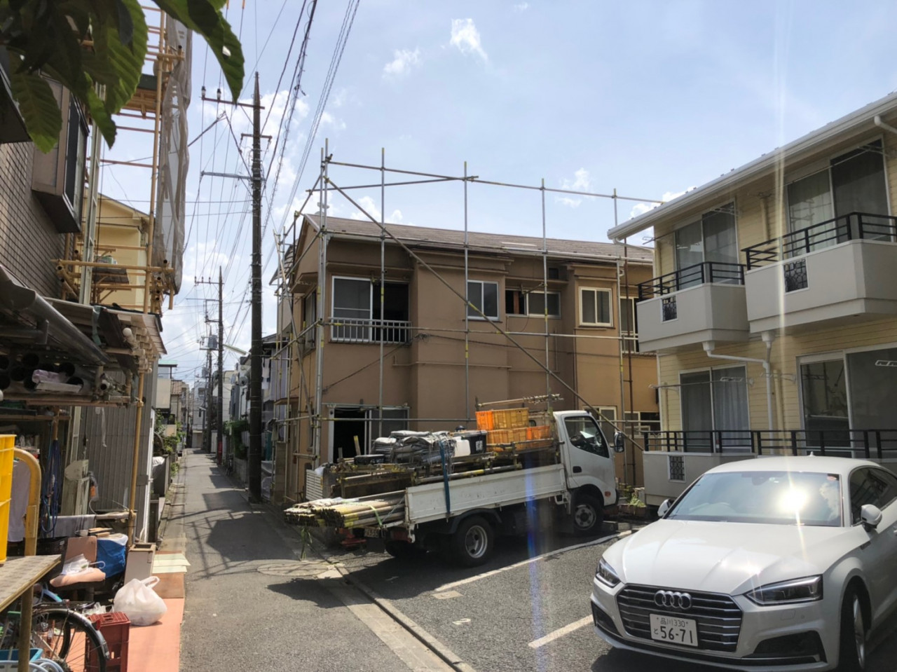 大田区の解体工事現場で解体養生足場仮設工事を行いました。 2019/06/22 大田区の解体工事現場で解体養生足場仮設工事を行いました。 こちらが単管・防炎シート養生後の写真になります。 2019年6月 大田区で解体工事を行う現場の足場工事を行いました。 右が解体養生をした後の写真です。
